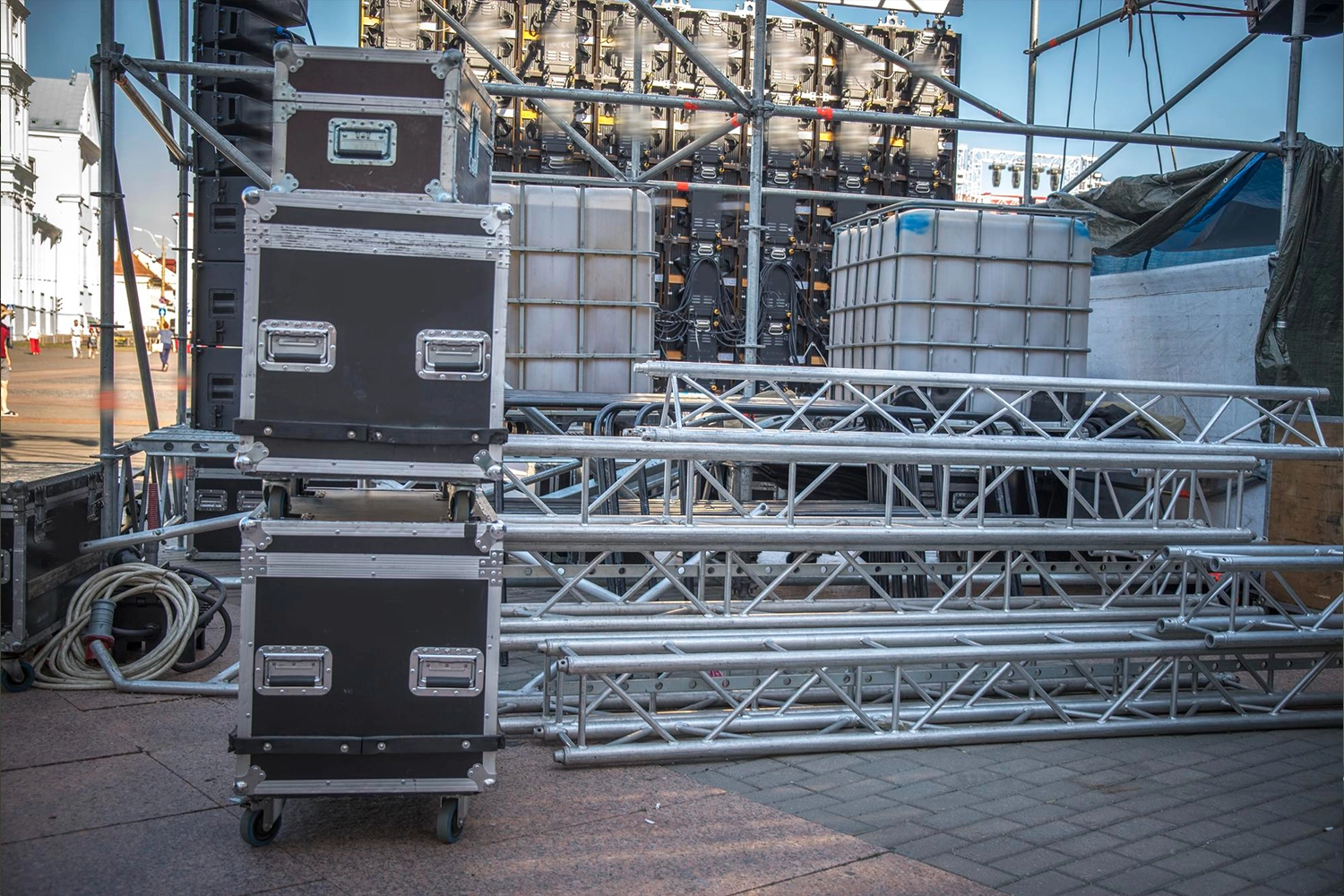 Uvijek osiguravamo prisustvo naših tehničara kada paketi uključuju rasvjetu, LED ekrane ili zvuk, dok kod samostalnog najma bine ili krovišta naše osoblje vrši samo montažu i demontažu.